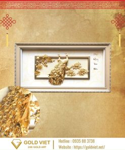 Tranh Đôi Công Và Hoa Mẫu Đơn được chế tác từ vàng lá 24K, tạo nên sự sang trọng và quý phái.
